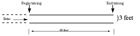 Course: A 3ft wide straight course that is 60ft long.