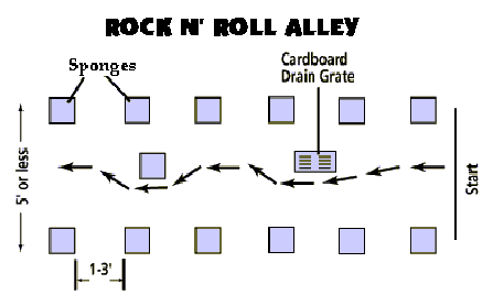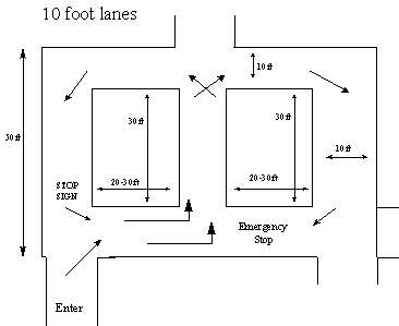 Course: A 3ft wide course that features right & left turns, a stop sign, and emergency stop. (Try and make corners like intersections and draw in chalk the way the turns should go)