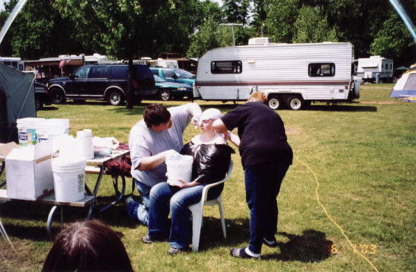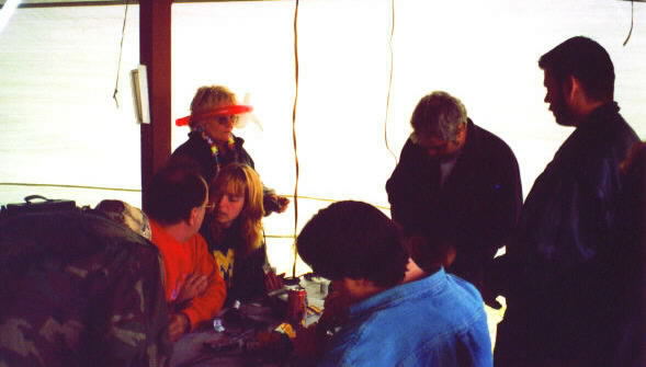 KkrazeykKaren Kkaren in front. JJ massaging Clippers shoulders, Kitty (Mrs Thirsen Howl), Midnight talking to Jim Wieme.(who sells real coffins and funkins)